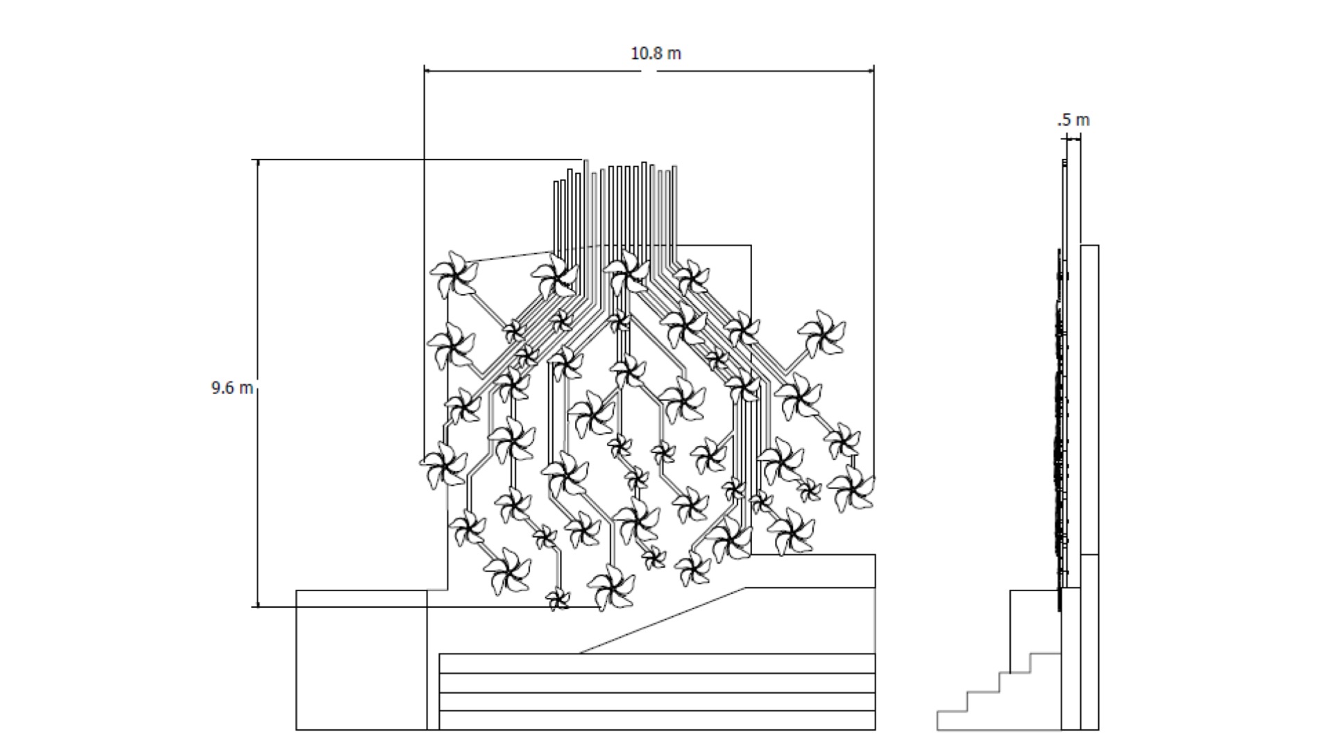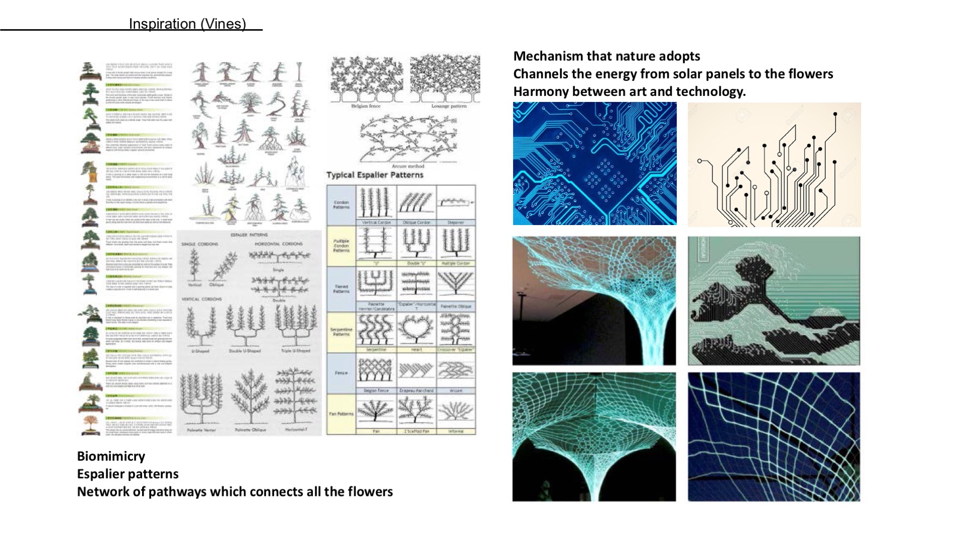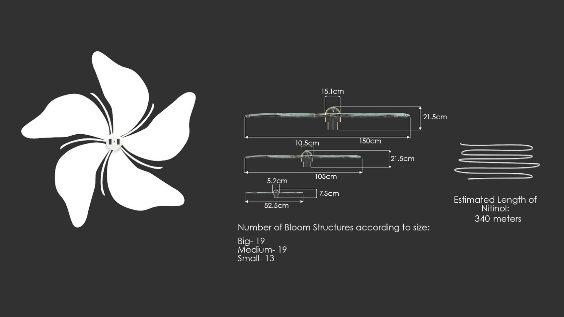 This project is to be situated within the public performance space of the North Spine canopy. Bloom aims to bring awareness to the growing realm of art and design, coupled with the increasingly successful global efforts towards innovative materials, forms, and energy capture.